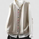 O Colete em Malha Rosalie foi criado para mulheres que procuram conforto e sofisticação numa peça versátil. Com o seu corte descontraído, fecho simples com um botão e decote clássico, é fácil de sobrepor, acrescentando um toque cuidado ao seu look diário — perfeito para passeios de outono, almoços casuais ou noites descontraídas.