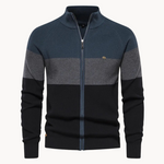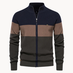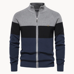 Cardigã de Malha com Zíper - Gola com Risca Contrastante e Movimento Fácil
