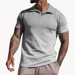 A gola utiliza um design estilo Johnny que se mantém estruturado e assenta de forma plana. O corpo em malha proporciona leve elasticidade para movimento e uma silhueta cuidada. Costuras planas e bordas reforçadas ajudam a peça a manter a sua forma e resistir a pontos de desgaste comuns.