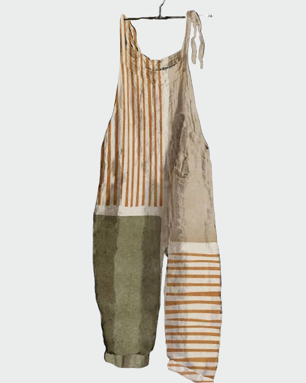 O Καλλιτεχνική Αρμονία é um macacão que se destaca pelo seu design único. As listras geométricas e as combinações de cores criam um resultado único, enquanto o corte solto oferece conforto e estilo.