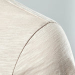 O tecido é uma mistura de malha suave que oferece leve respirabilidade e um estiramento gentil. A construção em malha ajuda a peça a manter a sua forma e reduz as rugas durante o uso. As costuras são posicionadas para reduzir o atrito e manter uma silhueta suave.
